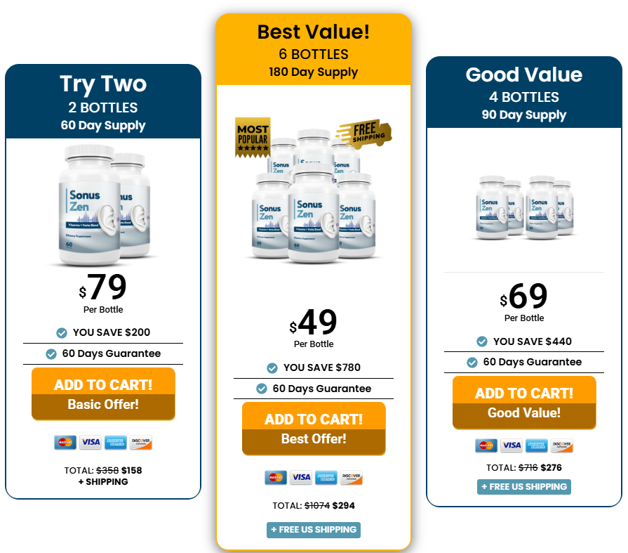 Currently, SonusZen is backed by a 60-day money-back guarantee, giving you a completely risk-free opportunity to try it for yourself. Free shipping is available on multi-bottle packages, and limited-time discounts of up to 65% OFF may still apply.